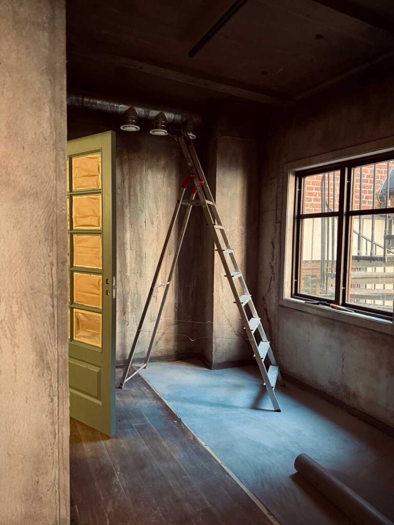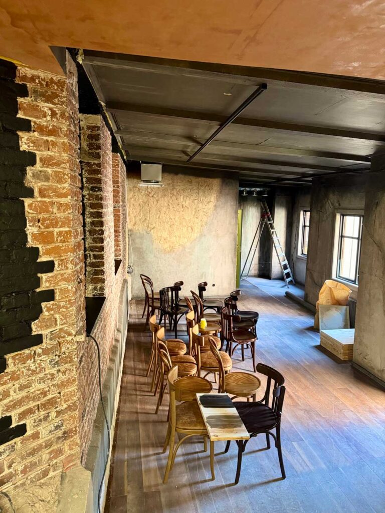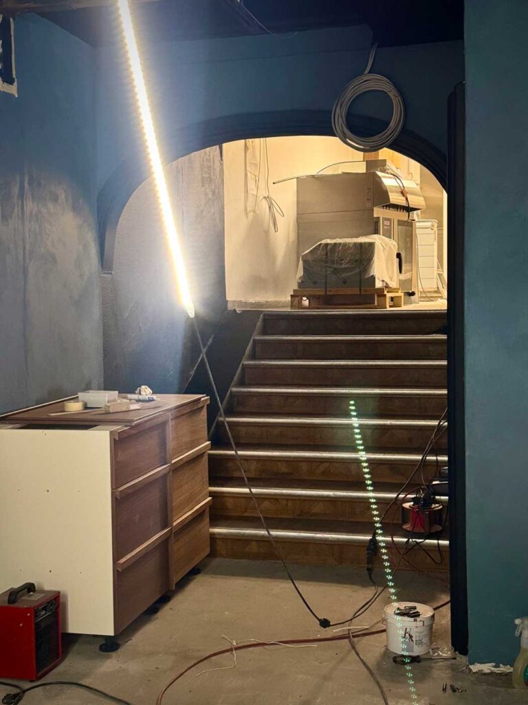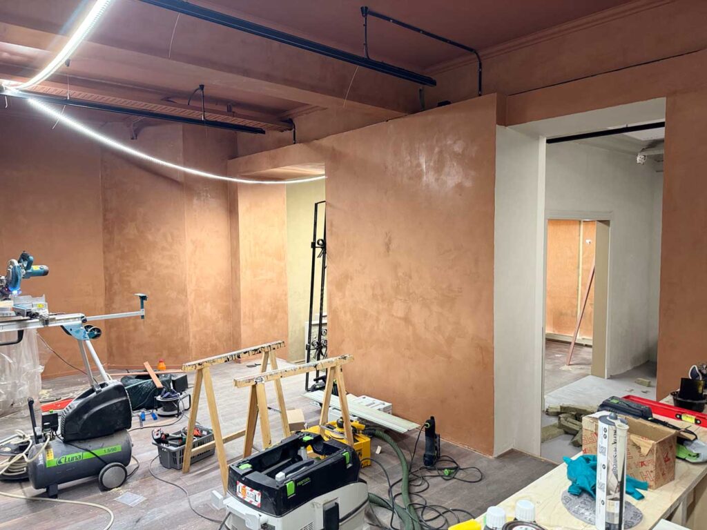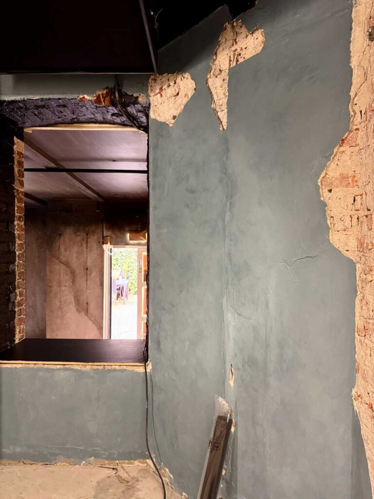 Daniel, som driver Wittsell Design, håller som bäst på att forma interiören där han plockar fram gamla väggar och skapar nya – som ser gamla ut! Strukturerna från pigmenterat spackel och microcement skapar en exklusiv känsla och när vi går igenom lokalerna kan jag verkligen föreställa mig hur det kommer att kännas när allt är klart, möblemanget är på plats och smakerna fyller gommen. Han talar varmt om de lokala råvarorna, de medelhavsinspirerade smakerna och de säsongsbetonade rätterna, plockade ur delikatessen såklart. Här kommer man att hitta nya smaker och råvaror under de olika årstiderna, och man kommer alltid att få plats, lovar han.
