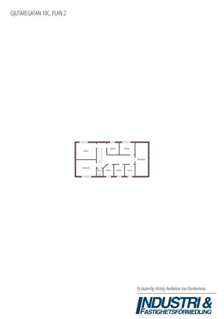 Bestående av reception samt väntrum, matplats med pentry, wc samt fyra kontor på entréplan. Övre plan består av sex kontorsrum i varierande storlekar, wc samt ett tilltaget konferensrum. Total yta 205 kvm